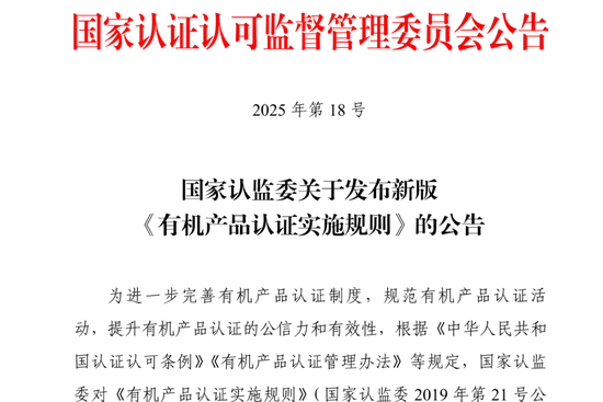 当前,国家认监委已发布新版《有机产品认证实施规则》,并于2026年1月1日起正式实施。其中,重点变化内容包括强化认证机构与人员管理、加严细化认证要求、加大证后监管力度、规范证书格式内容。